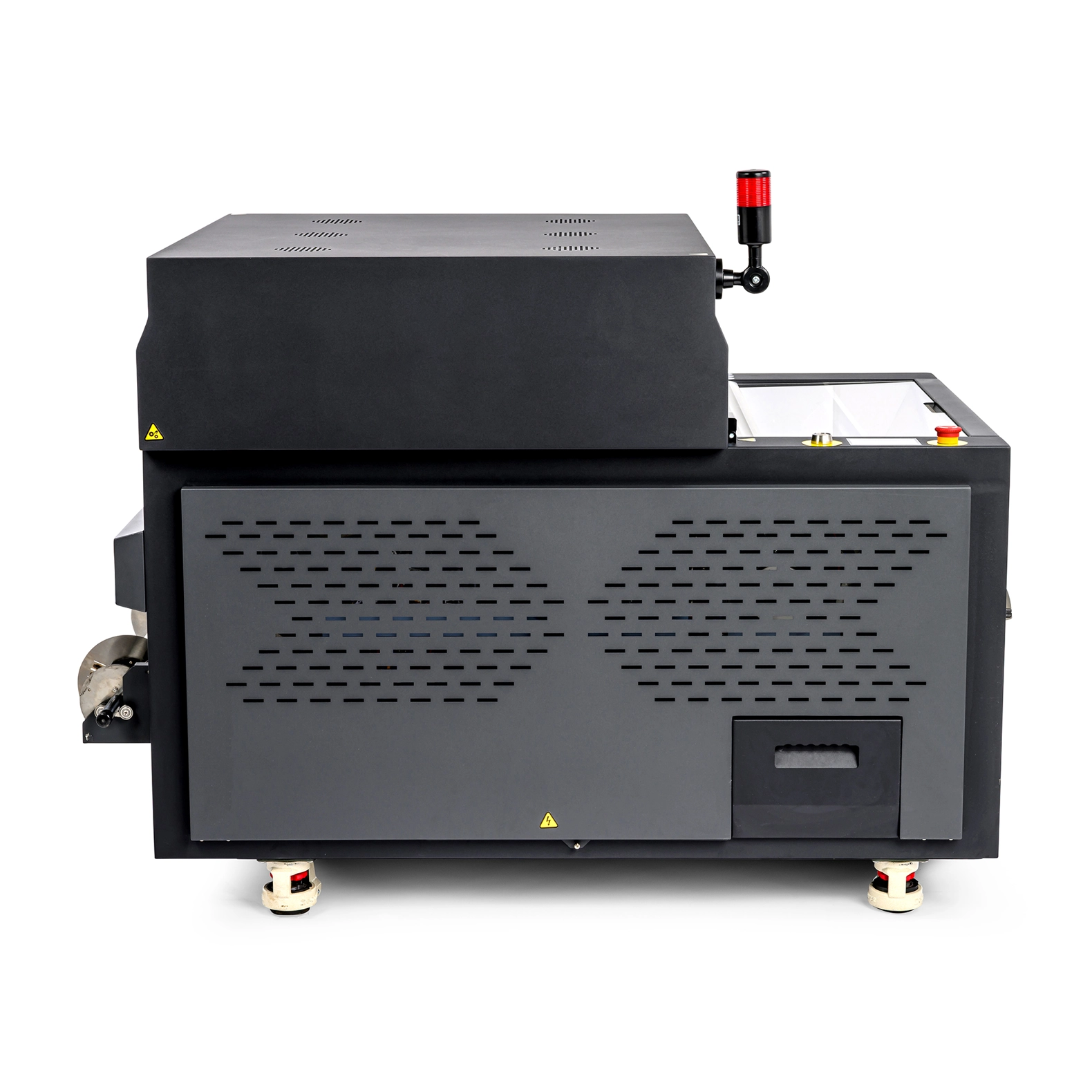 Ein integrierter Sensor zur Erkennung der Betriebs- bzw. Bandgeschwindigkeit passt die Verarbeitung automatisch an angeschlossene DTF-Drucker an – für einen reibungslosen, kontinuierlichen Betrieb ohne manuelle Justage.